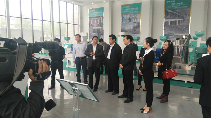商會參觀公司設備展廳,董事長沈玉現(xiàn)介紹很新智能谷物除霉設備